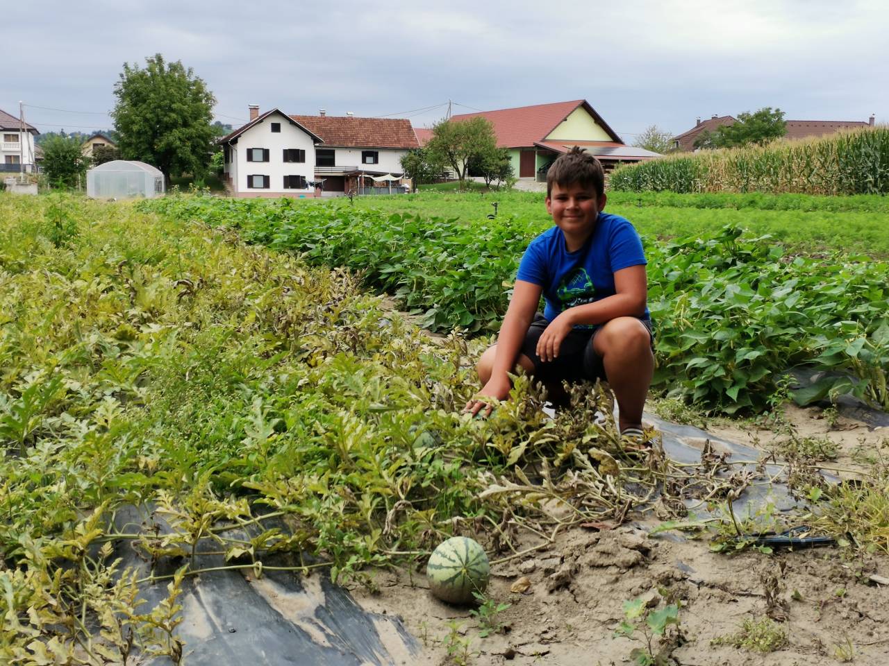 Letos že četrto leto družina goji lubenice, ki so del ponudbe Hanželičeve kmetije. Lubenice so glavna niša mladega kmeta, a v njegovi posodi ob cesti se znajdejo tudi domače melone.
