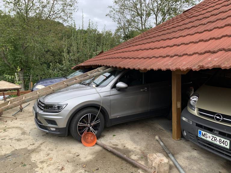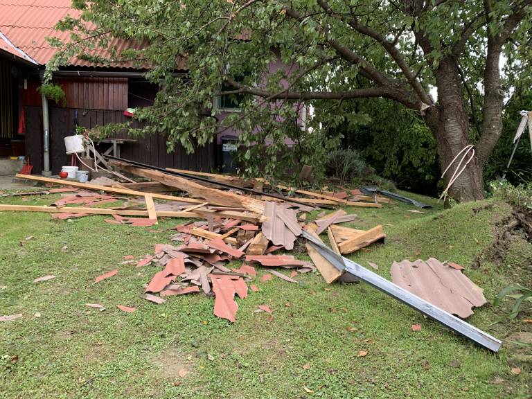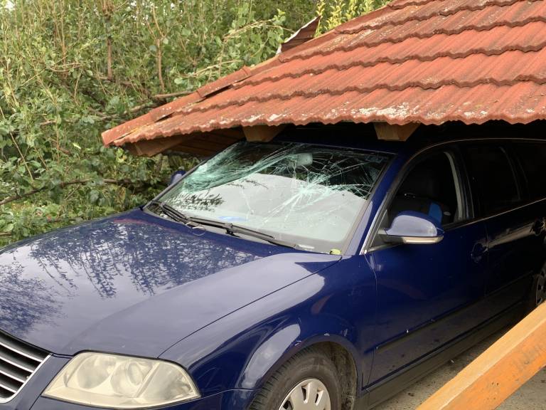 »Dvignilo ga je v zrak, obrnilo in vrglo na tla,« je povedal lastnik hiše. Pod podrtim nadstreškom so tako ostali trije družinski avtomobili.