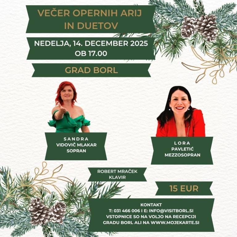 V nedeljo, 14. decembra, se bo v Viteški dvorani gradu Borl odvil izjemen koncert opernih arij in duetov.