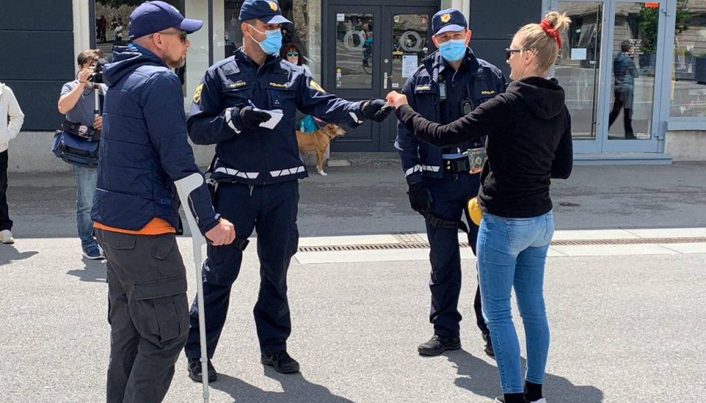 Policisti popisujejo tiste, ki so ob spomeniku kaj odložili. Eden izmed protestnikov je ob spomeniku pustil granitno kocko, druga transparent s pesnitvijo, tretja rdeče nageljne. Vzdušje med protestniki je precej sproščeno, nekateri med popisovanjem jedo sladoled.