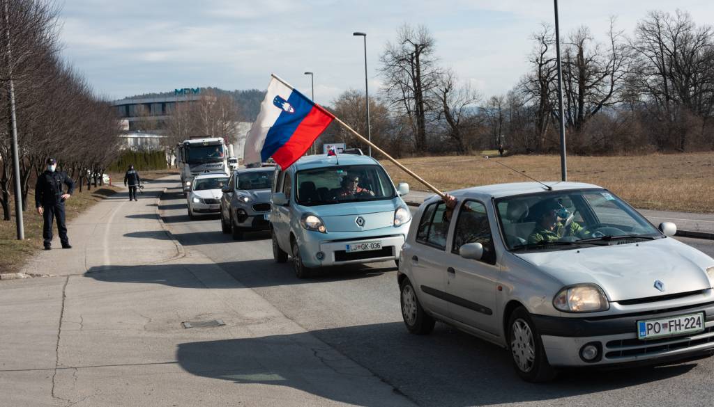 Trenutno protestniki krožijo po obvoznici, zbirno mesto imajo na Dolgem mostu.