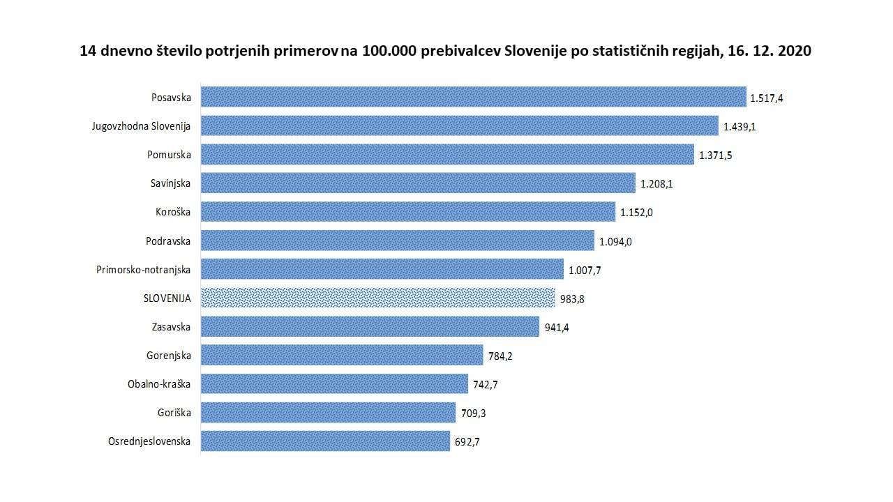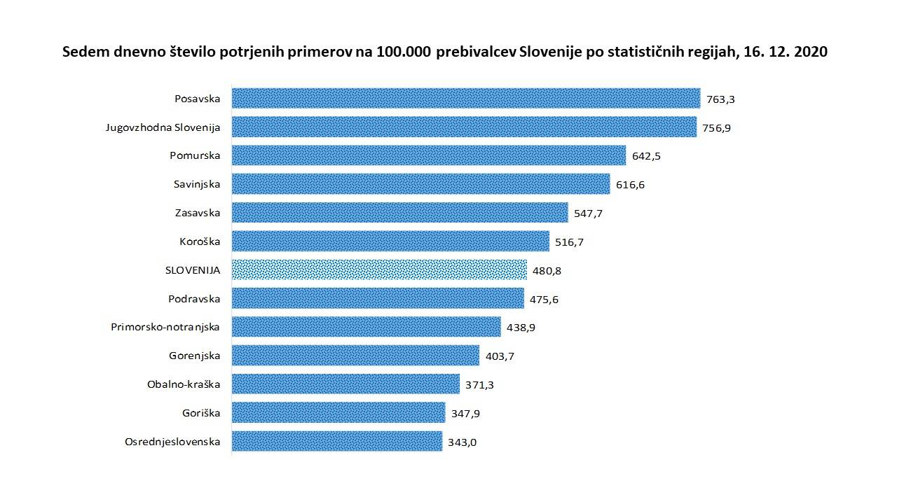 Kacin je predstavil 14-dnevno in 7-dnevno število potrjenih primerov na 100 tisoč prebivalcev Slovenije. Najboljšo epidemiološko sliko v državi imajo Osrednjeslovenska, Gorenjska, Goriška, Obalno-kraška regija.