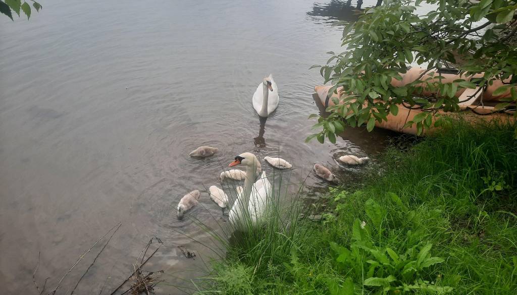 Spomnimo … Zaljubljeni labodji par je že vrsto let v atrakcija na mariborskem Lentu. Lani se je mariborskemu labodjemu paru po več kot mesecu dni čakanja izvalilo šest malih puhastih kepic. Na zdaj že stalni lokaciji ob restavraciji na Lentu si je labodji par letos ponovno postavil gnezdo.