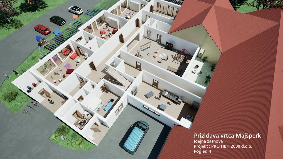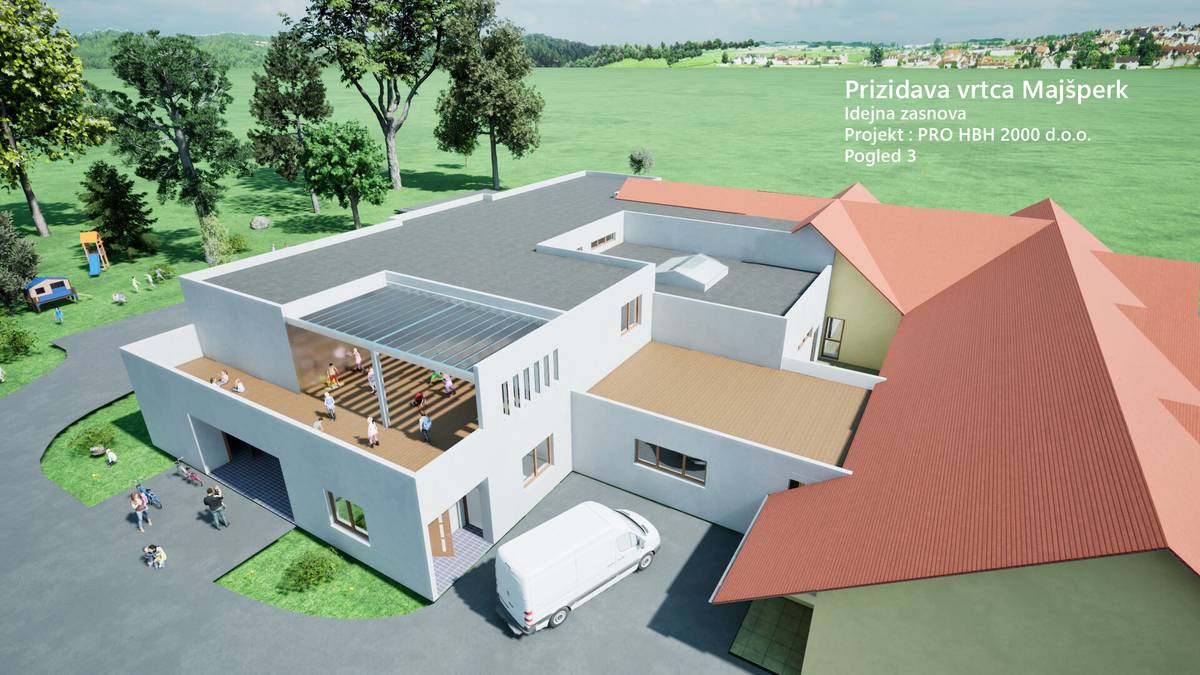 Projekt vključuje dograditev obstoječega objekta vrtca ter prenovo sedanjih prostorov.