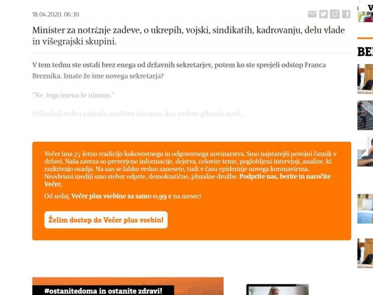 »Potrebujemo vas, vi ste naš zaveznik. Hvaležni smo vam, ker nas spremljate že dolga leta. Izjemno nas bo razveselil tudi vsak, ki bo pripravljen z naročnino ali nakupom dnevnih izdaj tudi finančno podpreti naša prizadevanja in naše delo. Podprite nas. Naša zaveza je in bo kakovostno, odgovorno novinarstvo,« je pred dnevi zapisal bralcem odgovorni urednik Večera Matija Stepišnik.