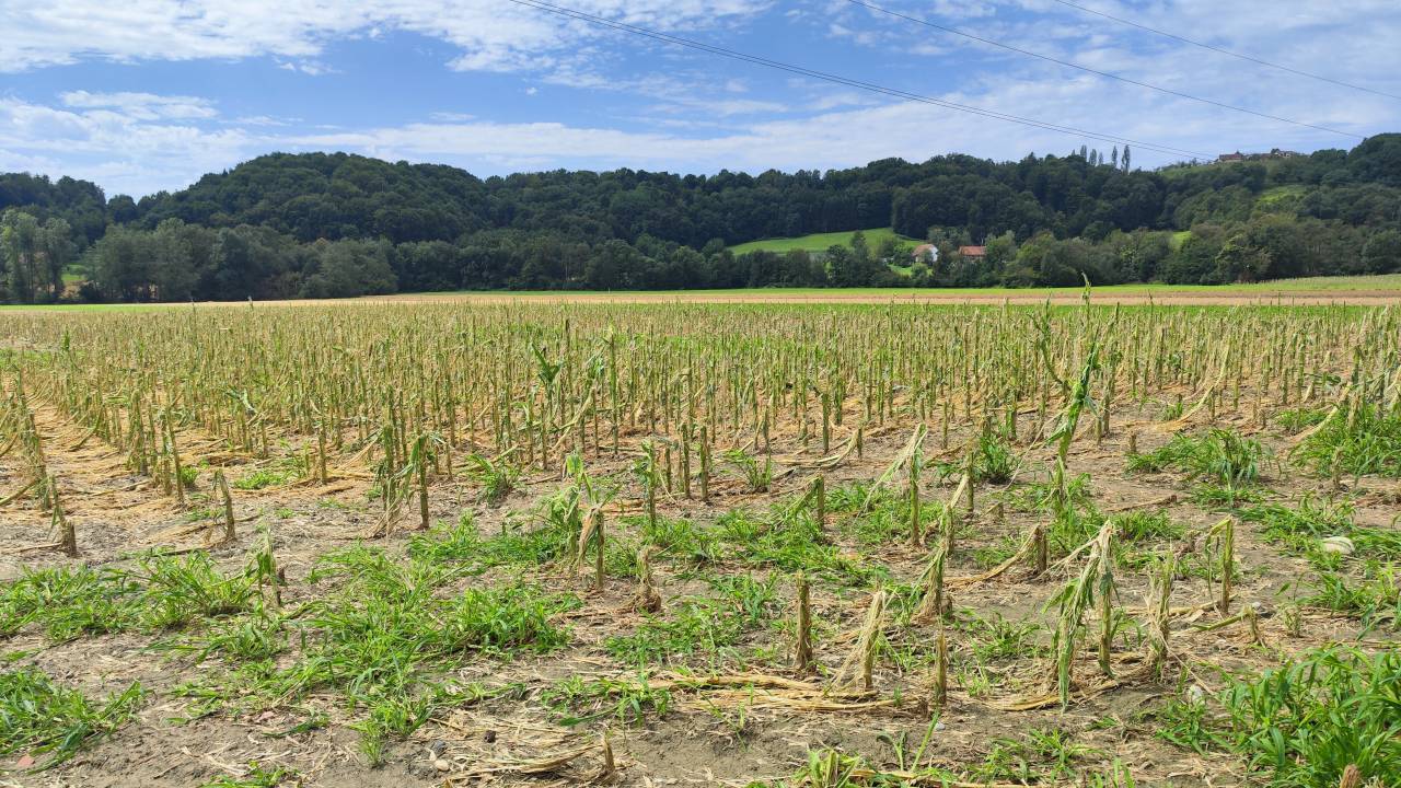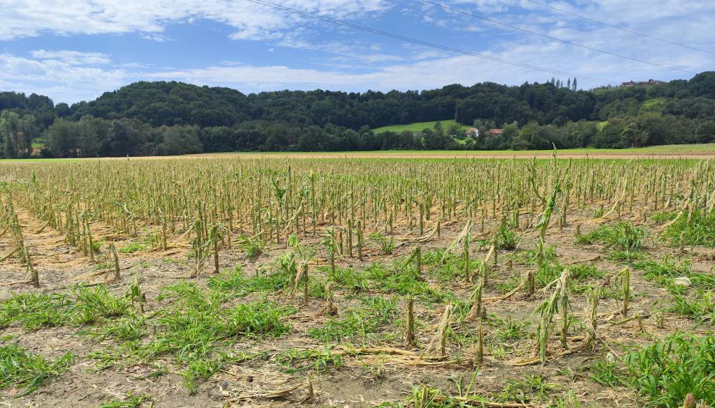 Irena Leonida Kropf, direktorica Kmetijsko gozdarskega zavoda Maribor, je dejala, da je popolnoma, torej 100-odstotno uničenih tri in pol hektarjev koruze, zaradi česar kmetom ne preostane drugega, kot da polja preorjejo. Popolnoma je uničenih tudi nekaj hektarjev vinogradov.