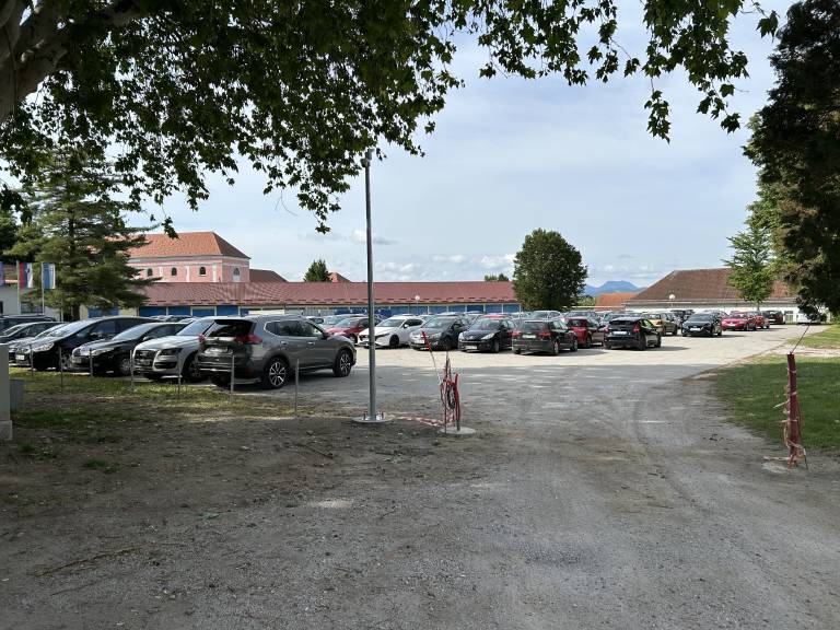 Šolski center Ptuj zapira veliko makadamsko parkirišče pred Elektro in računalniško šolo.