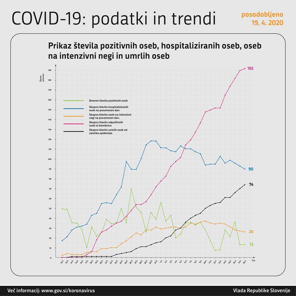 Včeraj je bilo opravljenih 685 testov, od tega jih je bilo 13 pozitivnih. Trenutno je hospitaliziranih 90 oseb, od tega jih je 26 na intenzivni negi.