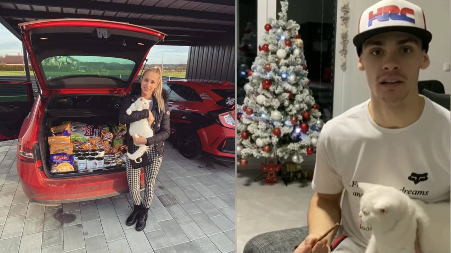 Na Facebooku je Tim Gajser delil tudi fotografijo s polnim avtomobilskim prtljažnikom hrane za živali. V objavi je zapisal: »Namesto rakete kupi brikete!«