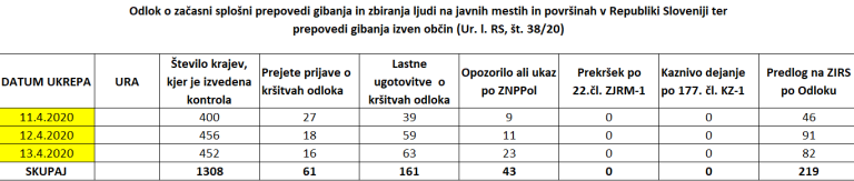 Nadzor so izvedli v 11.308 krajih. Prejeli so 363 prijav, sami pa zaznali 1.089 kršitev odloka. Pri tem so izrekli 700 opozoril.