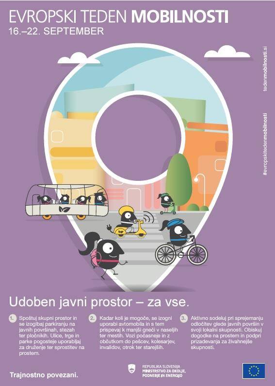Tema letošnjega 23. Evropskega tedna mobilnosti je »Udoben javni prostor - za vse«.