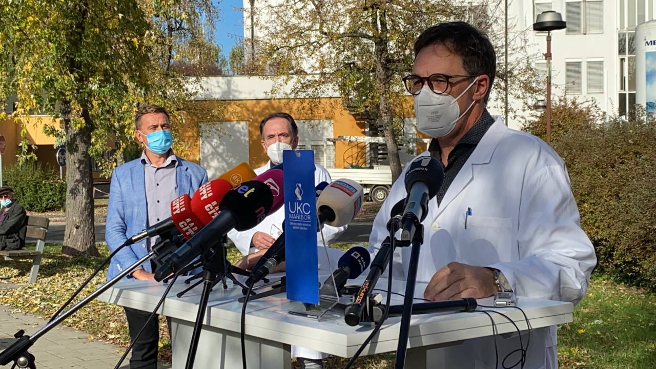 »Covid bolnike smo začeli nameščati tudi na pljučnem oddelku, to je naša dislocirana enota, tam jih imamo v tem trenutku 21. Razmere se zelo hitro spreminjajo, sam se recimo pred pol ure sprejel bolnika na žilno kirurgijo, ki je covid pozitiven, pa tega sploh ni vedel,« pravi Vojko Flis, direktor Univerzitetnega klinčnega centra Maribor, ki je pohvalil zaposlene, da zdržijo pritisk.