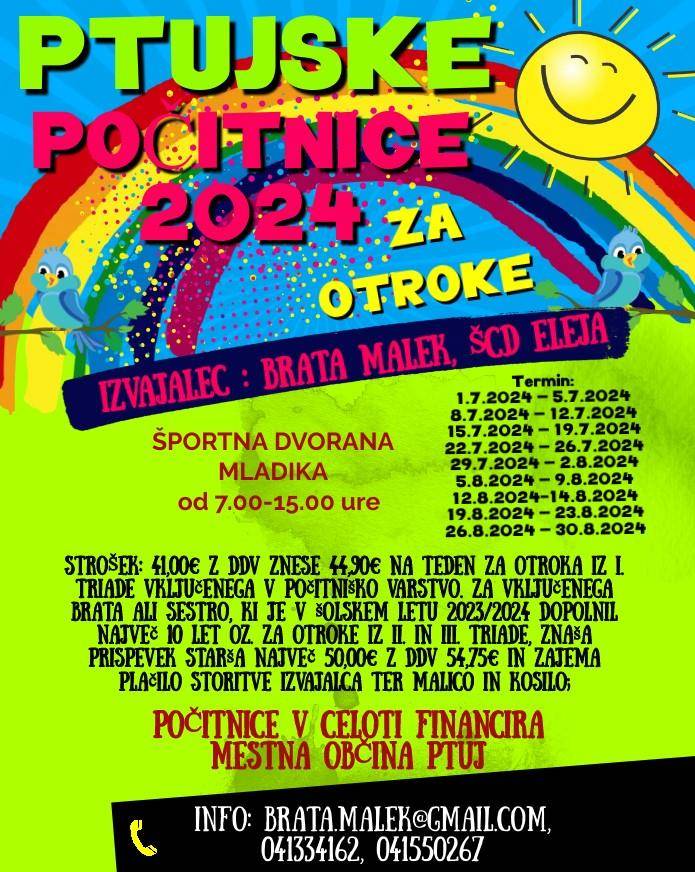 Mestna občina Ptuj bo tudi letos organizirala počitniško varstvo za otroke prve triade ptujskih osnovnih šol, ki imajo stalno prebivališče na Ptuju.