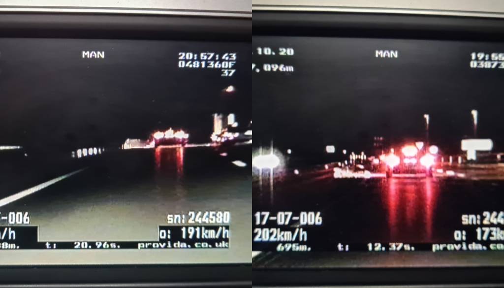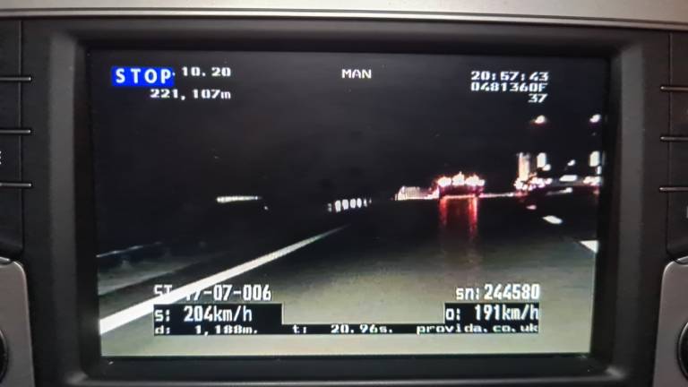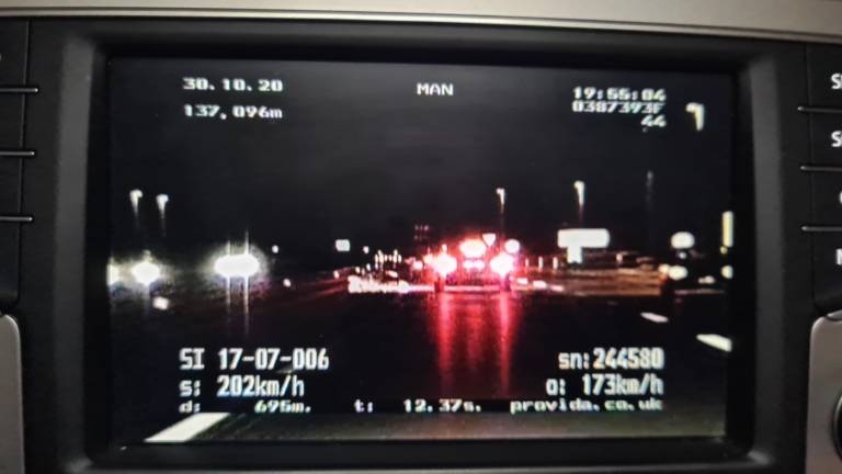 Okrog 20.55 so policisti na avtocesti A1 Ljubljana – Maribor izven naselja Slovenska Bistrica, kjer je hitrost omejena na 130 kilometrov na uro, ugotovili, da je 30-letni Ptujčan, voznik osebnega avtomobila znamke Ford Mondeo, na razdalji 1188 metrov vozil s povprečno hitrostjo 204 kilometre na uro.