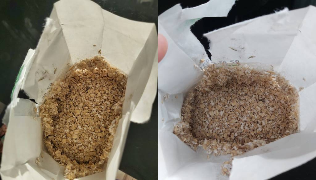 V Facebook skupini Mamice čvekamo se je pojavila fotografija paketa ovsenih kosmičev, kupljenih v Tušu. Po navedbah članice skupine so bili kosmiči kupljeni v enem izmed ptujskih Tušev.