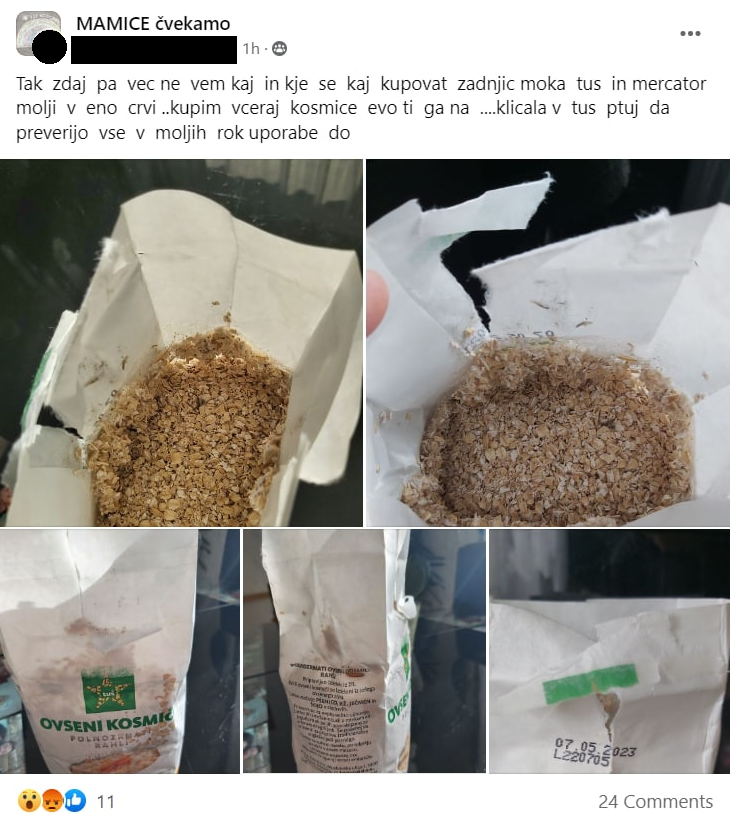 »Vam iz prve roke povem, ko delam v trgovini, vse moke, žita so moljave in črvive - vem, ker smo jih ogromno odstranili,« je komentirala ena od uporabnic.