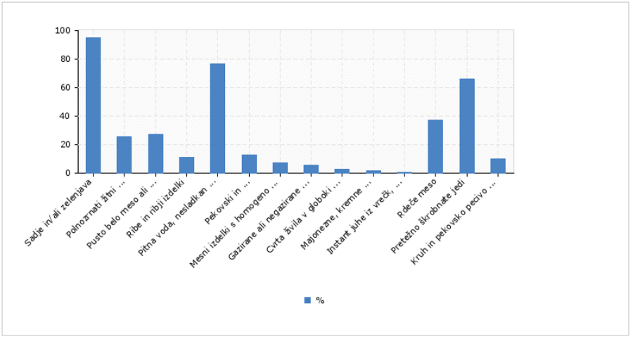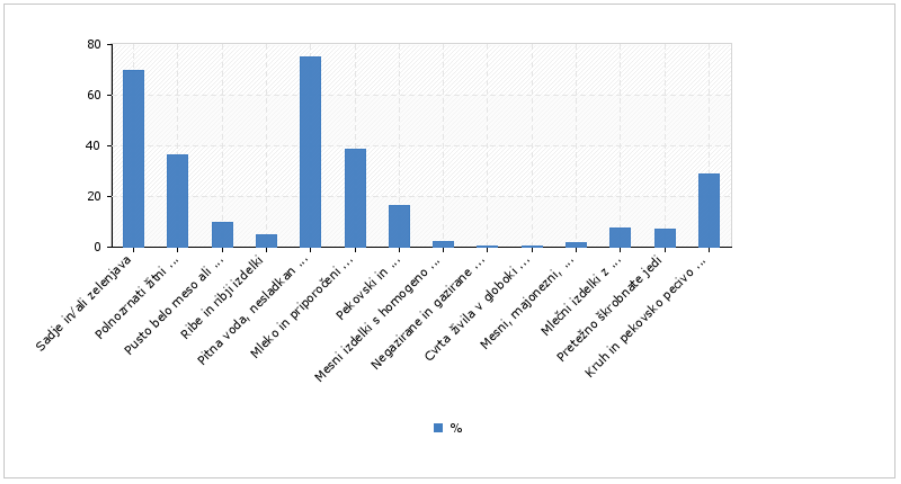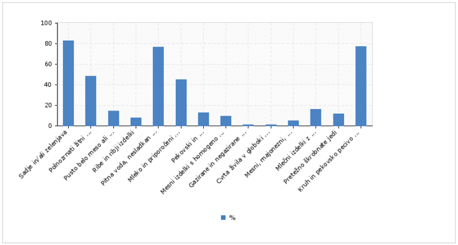 Glede na smernice naj bi odsvetovana živila v mesečni jedilnik vključevali v največ 20 odstotkih. V večjem obsegu so se pri vseh obrokih pojavili pekovski in slaščičarski izdelki z višjo vsebnostjo sladkorja in/ali maščob, vključno z industrijskimi sladicami in sladkarijami.