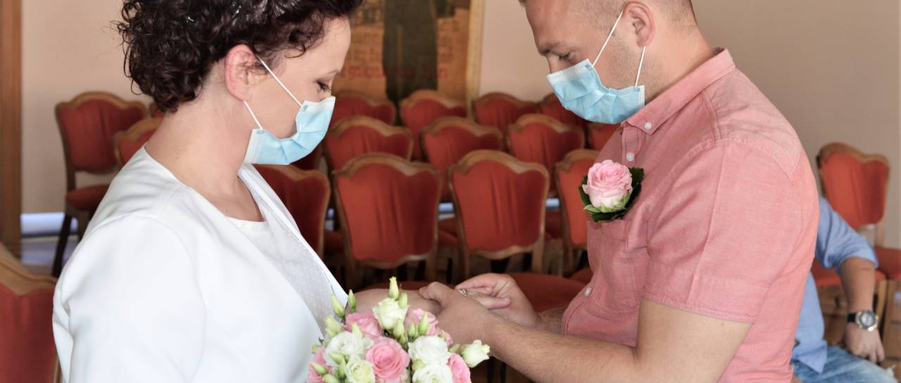 Pri vhodu na matični urad so si morali vsi razkužiti roke, si nadeti zaščitne maske in upoštevati medsebojno varnostno razdaljo. Maske so morali nositi celoten čas obreda, izjema je bil le prvi poljub mladoporočencev.
