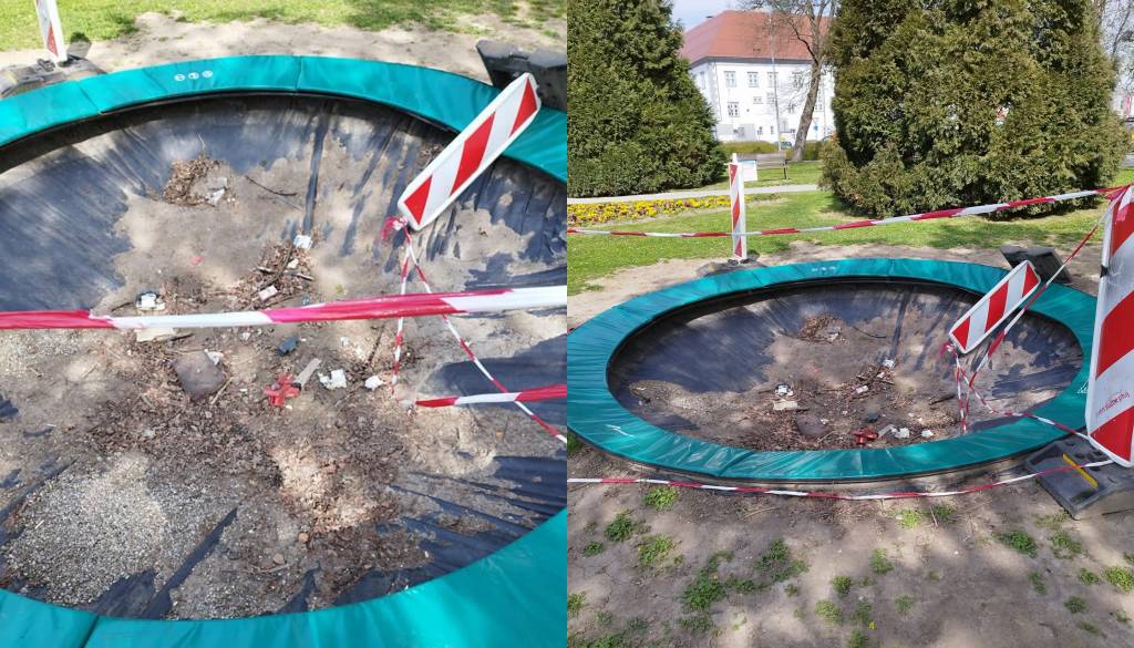 V Facebook skupini Ptuj - Moje mesto pa so se zdaj pojavile še fotografije uničenega trampolina v ptujskem parku.