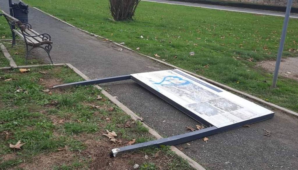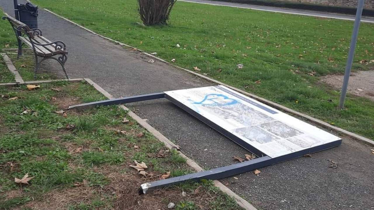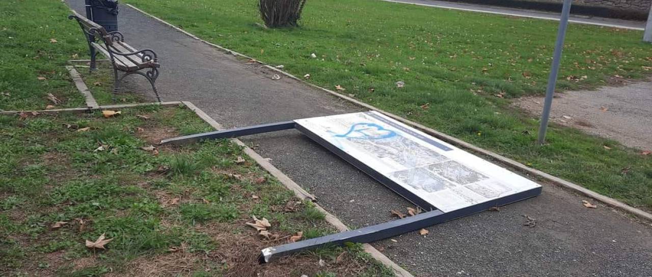 Matej Siebenreich, ptujski mestni svetnik iz vrst Liste Andreja Čuša, pa je na družbeno omrežje Facebook objavil še en primer vandalizma na Ptuju. Vandali so tokrat podrli informativno tablo ob vznožju griča Panorama.