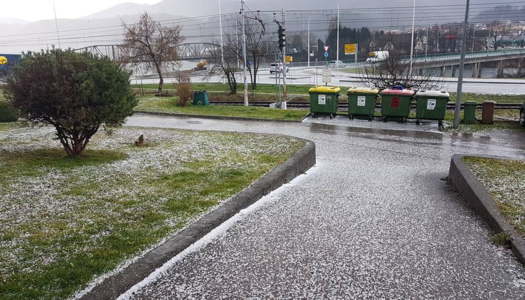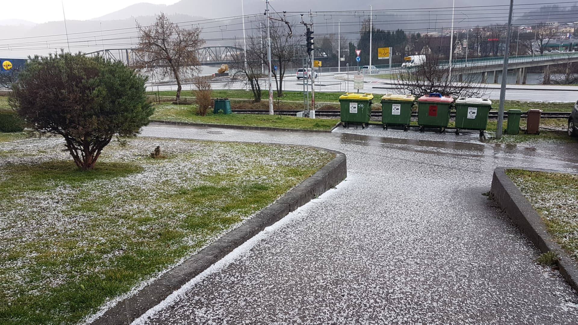 O snegu že poročajo iz Koroške, sodra je padala ponekod na štajerski avtocesti, o močnem nalivu s sodro poročajo tudi iz Slovenske Bistrice.