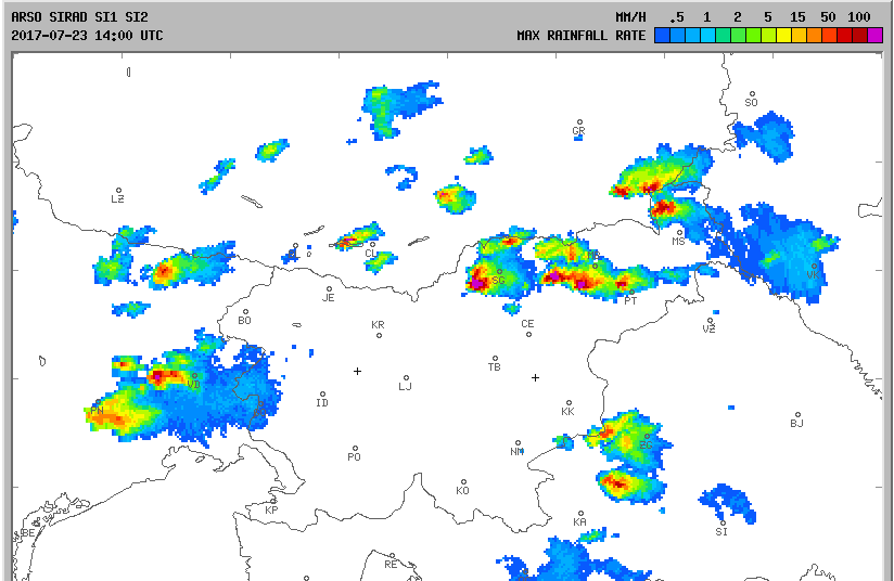 Večinoma je severovzhodni del Slovenije zajelo močno deževje. Ponekod, med drugim tudi v Spodnji Bačkovi pri Lenartu v Slovenskih Goricah, so neurja prinesla tudi točo.