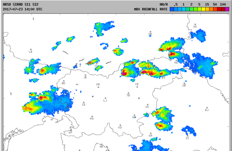 Nekaj močnejših neviht se je v zgodnjih popoldanskih urah na severovzhodu Slovenije že pojavilo. Kot opozarja Agencija Republike Slovenije za okolje, se bodo te zavlekle vse do večera in tudi v noč. Možnost krajevnih neurij pa bo po vsej državi povečana tudi jutri.
