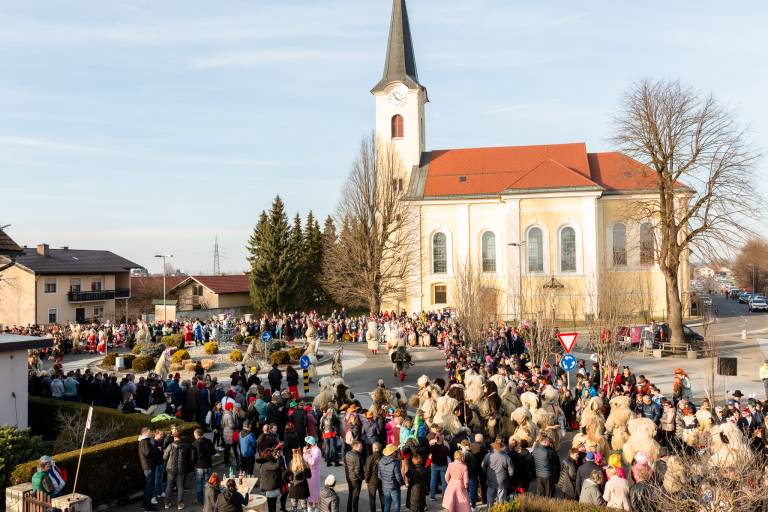 Z glasno glasbo muzikantov folklorne skupine se veseli sprevod pomika po vasi in se ustavlja na dvoriščih vaščanov.