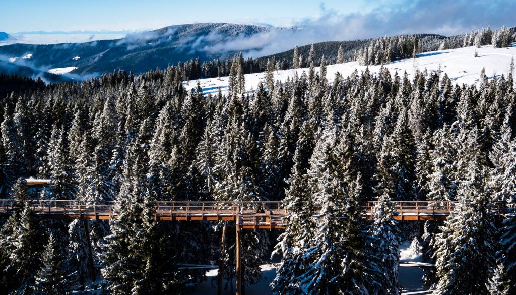 Meja sneženja se je ponoči spustila, sneg je pobelil vrh Rogle.