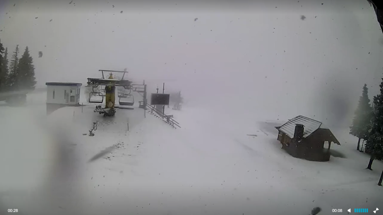 Ponoči je začelo snežiti, meja sneženja se je spustila do okoli 1300 metrov nadmorske višine. Napovedi vremenoslovcev so se tako uresničile.