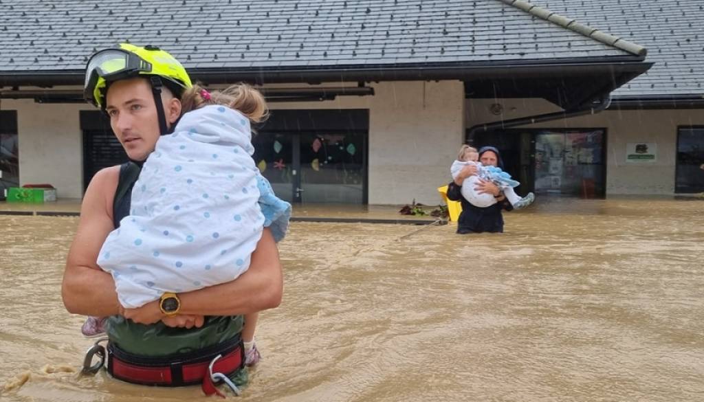 Med poplavami so gasilci iz Mengša objavili fotografije reševanja 22 oseb, večino med njimi otrok. Otroci so bili ujeti v vrtcu, od koder so jih evakuirali.