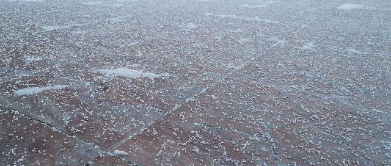 Je nepogost vremenski pojav, ko se snežinke stopijo na toplem zraku, a nato ponovno zamrznejo v babje pšeno.