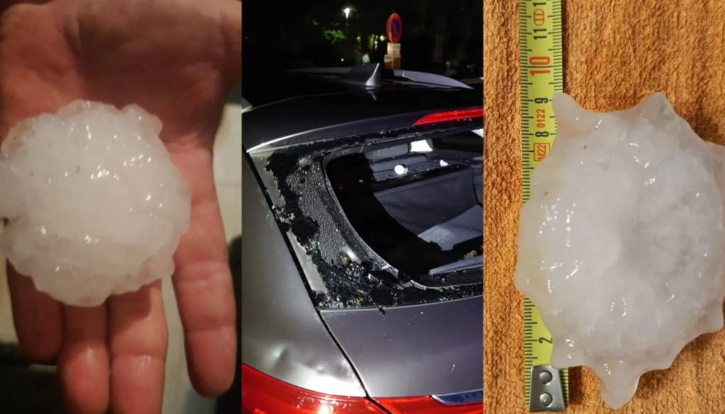 Po poročanju ljubiteljskih vremenoslovcev Skywarn Austria je ponekod pri sosedih padala toča s premerom do osem centimetrov.