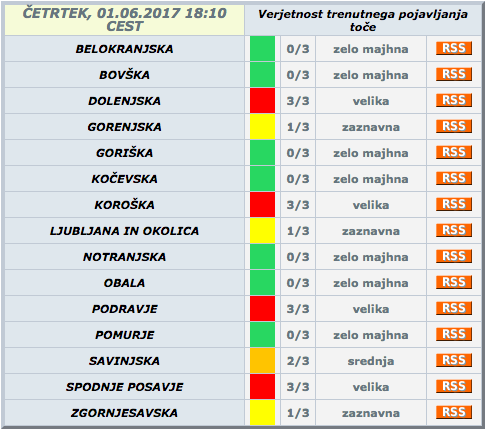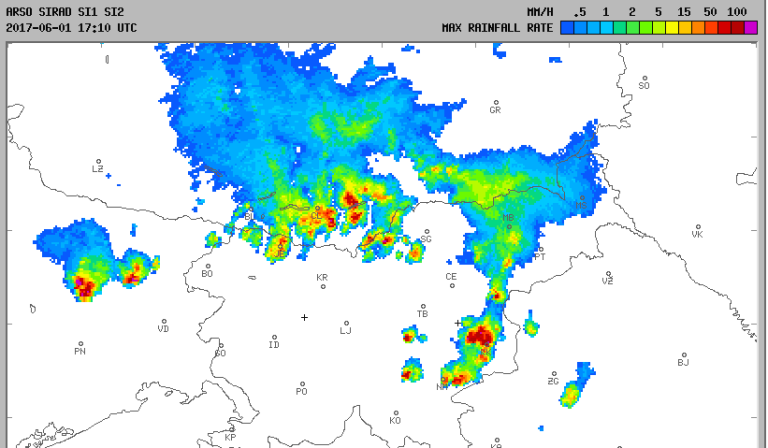 Agencija Republike Slovenije za okolje je izdala rdeči alarm za verjetnost trenutnega pojavljanja toče v Podravju.