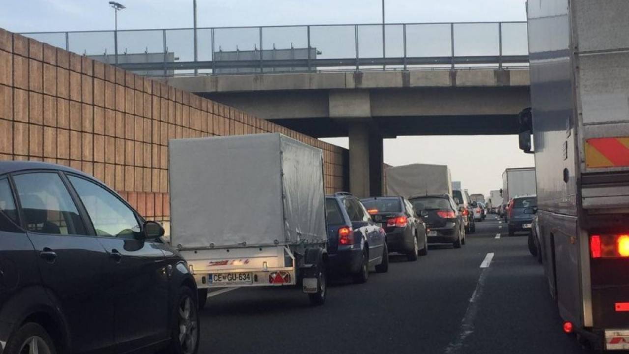 Nastal je šest kilometrov dolg zastoj, ki sega do priključka Fram.