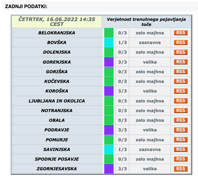 Ob tem lahko narastejo hudourniški vodotoki. Nevihte se gibljejo v smeri proti jugu.