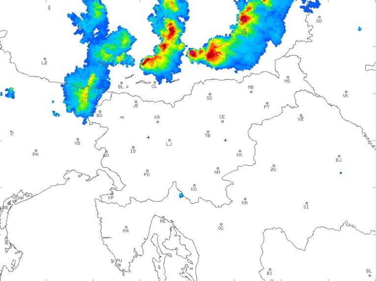 Po podatkih Agencije Republike Slovenije za okolje je ob večjih nevihtnih celicah severno od Dravograda radarska odbojnost dosegla mejo, ki nakazuje na verjeten pojav toče, močnih sunkov vetra in nalivov.