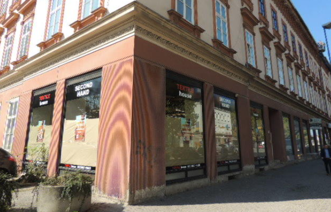 Na Partizanski cesti v središču Maribora se prodajajo pritlični poslovni prostori namenjeni trgovski dejavnosti, v kateri se je nahajala trgovina iz druge roke Textile house Second Hand.