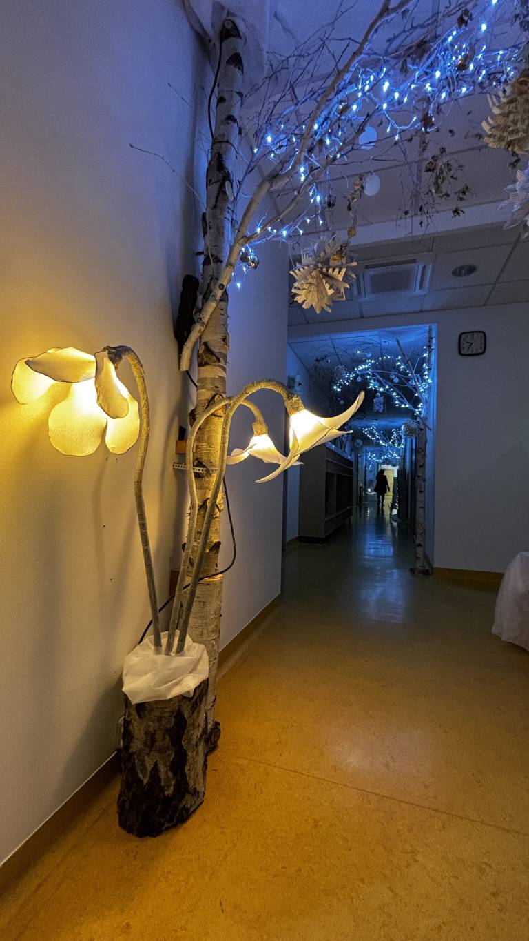 Dekoracijo so ustvarili zaposleni v Vrtcu Fram, na kar so zelo ponosni. Velik del okrasja je nastal reciklažno: iz starih Večerov, časopisov, odsluženih knjig, nogavic in žic, ki so jih z veliko dobre volje zbirali starši.