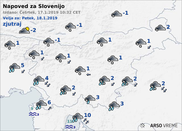 Snežilo bo torej ravno v času jutranje prometne konice, zato bodo vozne razmere marsikje otežene in se bo promet odvijal počasneje. Na Postojnskem bo vozne razmere poslabšala tudi burja. Popoldne bo že suho in najbrž večjih težav v prometu ne bo več.
