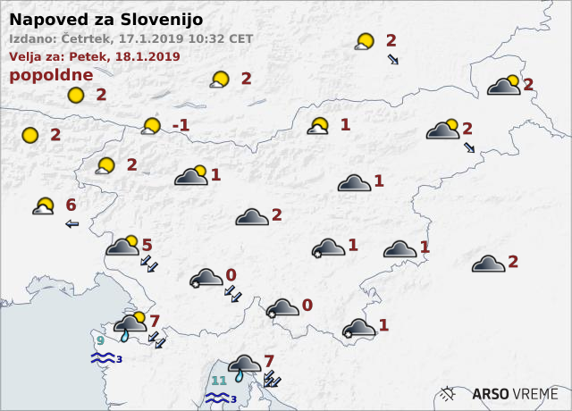 V noči na soboto bo nastala megla ali pa nizka oblačnost, zmrzovalo bo. Sobota, nedelja in ponedeljek bodo mrzli dnevi, tudi čez dan bo marsikje v notranjosti Slovenije temperatura ostala pod ničlo. Hladni zrak bo preplavil tudi Primorsko.