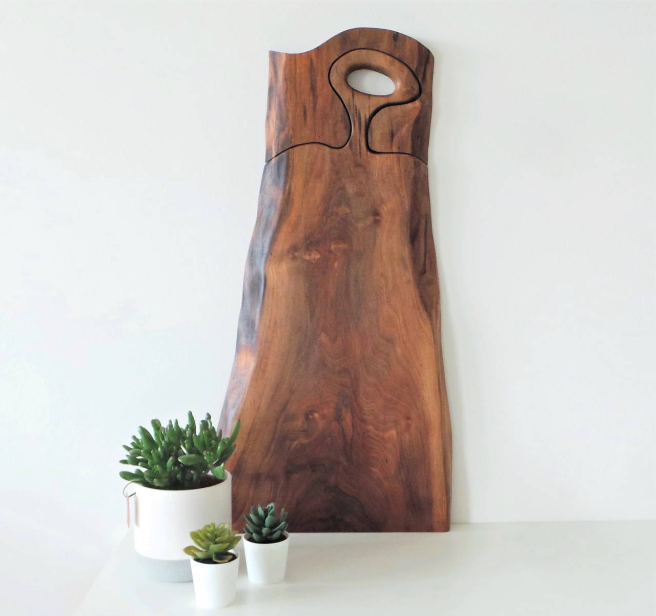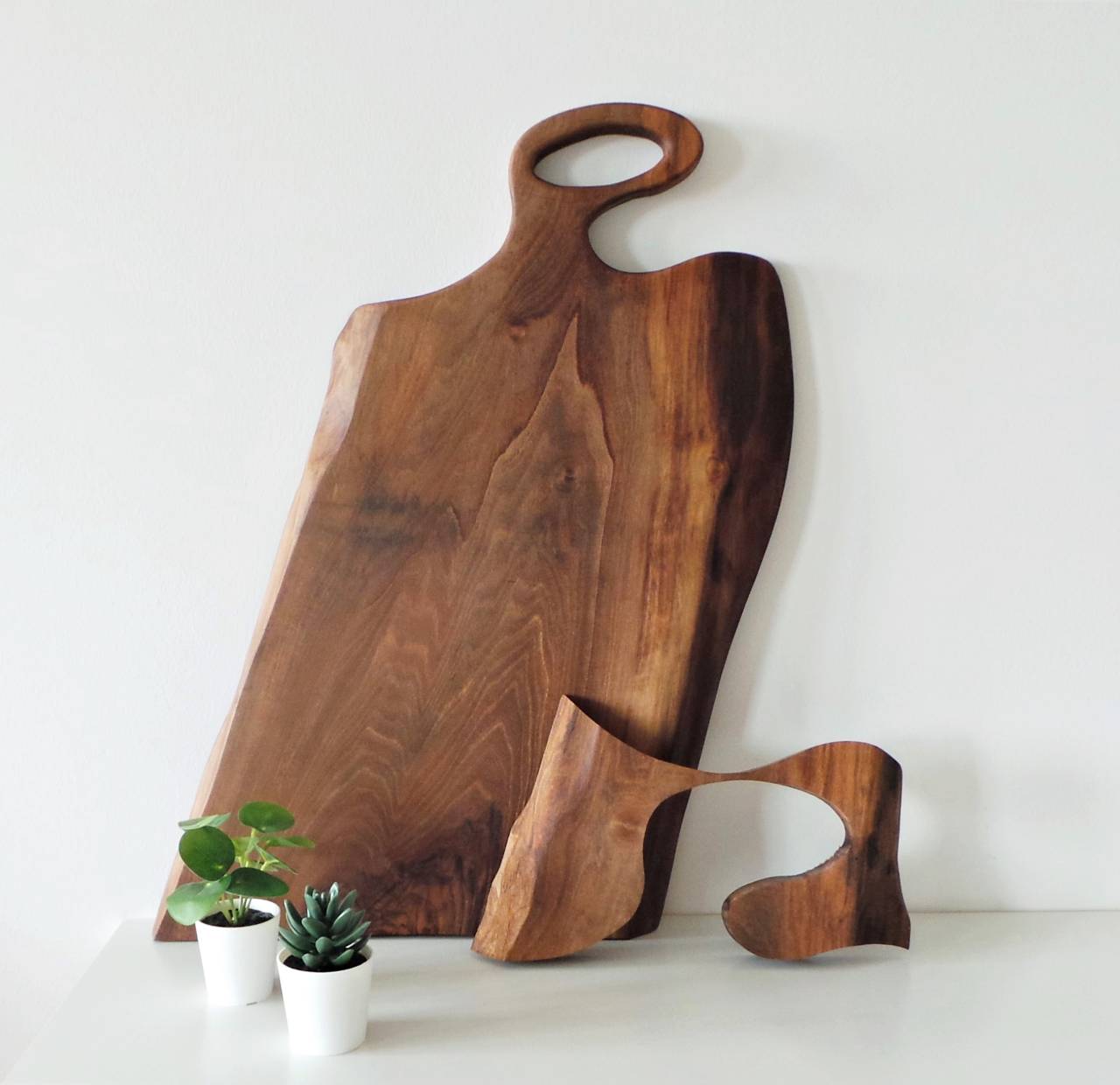 »Oba sva si že takrat želela izdelati eno večjo servirno desko, vendar za to nisva imela dovolj lepega lesa in ideja je morala počakati. Jeseni pa je bil Edi z mojim očetom na obisku pri očetovem prijatelju, ki se že, odkar se spomnim ukvarja z lesom, pri gospodu Bateku. On je bil tisti, ki je Ediju dal v dar prelepo skoraj trimetrsko desko evropskega oreha, s katere so nastale najine prvi tri servirne deske, za kar sva mu izjemno hvaležna,« pripovedujeta.