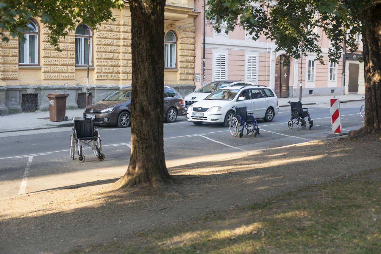 Zakaj so na parkiriščih v štajerski prestolnici postavljeni invalidski vozički?