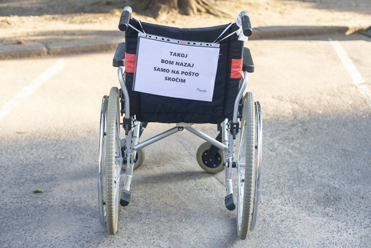 »Pridem takoj!« To je eno izmed sporočil, ki so jih na zadnji strani invalidskih vozičkov, s katerimi so na Slomškovem trgu zasedli pet parkirnih mest, pustili imetniki parkirnih kart za invalide.