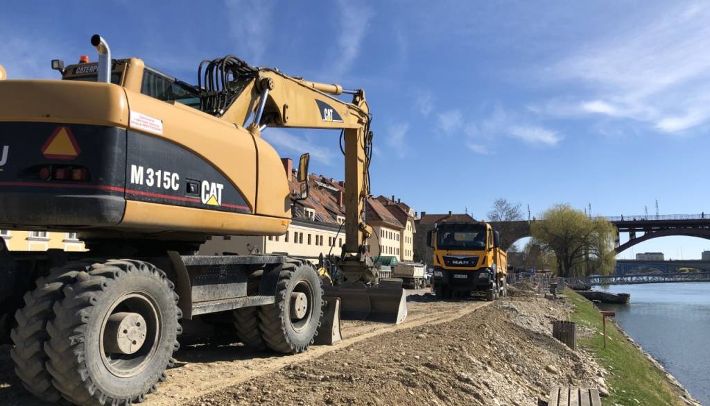 Največ del na Lentu je trenutno na območju med Kopališčem Pristan in Starim mostom.