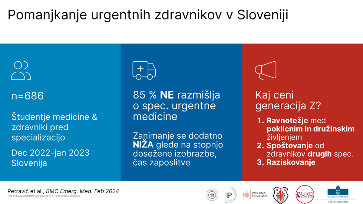 Pod okriljem Medicinske fakultete v Mariboru s sodelovanjem številnih raziskovalnih in zdravstvenih ustanov je nastala slovenska raziskava, ki je bila objavljena v prestižni reviji BMC Emergency Medicine. Zajela je 442 študentov in diplomantov medicine.