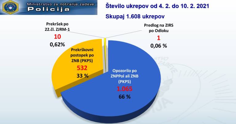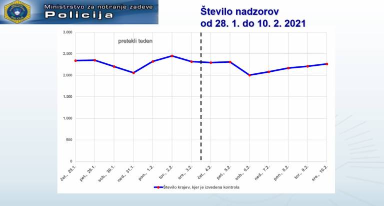 Podatke zadnjega tedna pa je predstavil tudi namestnik generalnega direktorja policije Tomaž Pečjak. Ta pravi, da je v primerjavi s tednom prej policija izvedli za 4,4 odstotka manj nadzorov, pri tem pa vseeno izrekla 6,6 odstotka več ukrepov.