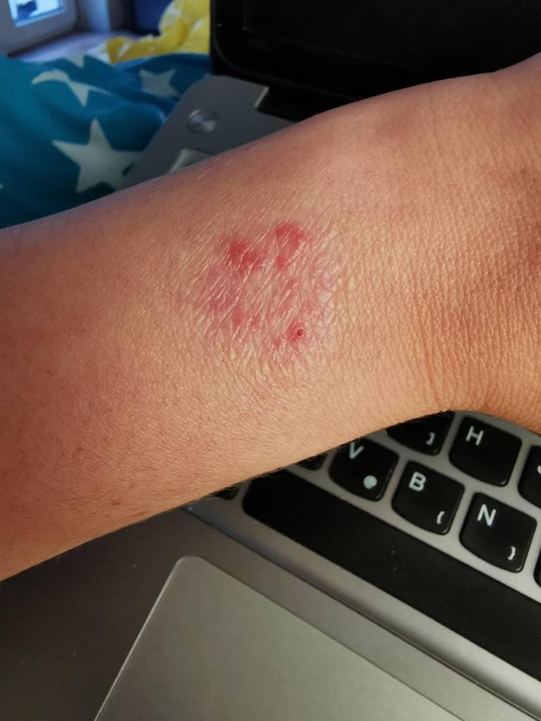 »Začelo se je s čudnim občutkom v roki in srbenjem, potem pa je izbruhnil izpuščaj, razlaga.«
