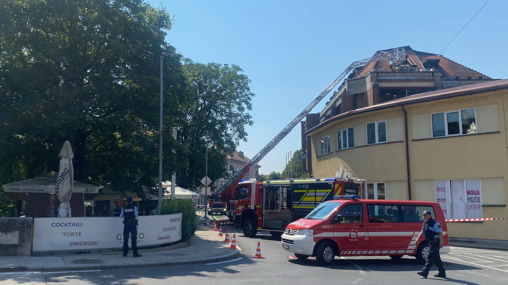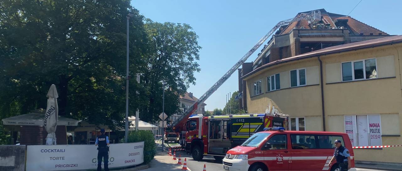 Do požara je prišlo v mansardnih prostorih Finančnega urada Ptuj. Policisti sporočajo, da so bile na objektu poškodovane zunanje enote klimatskih naprav ter streha objekta.