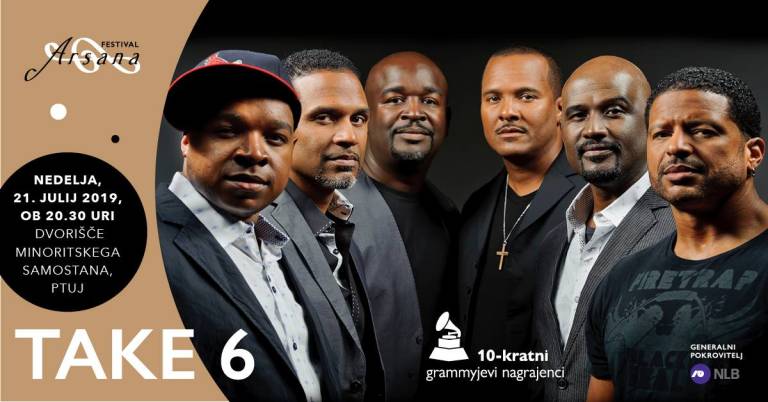 Ameriška a-capella skupina Take 6 velja za skupino z največ Grammy nominacijami v zgodovini. Gre za edinstveno zasedbo šestih izjemnih in prefinjenih glasov, združenih v kristalno harmonijo, ki nas s svojo čistostjo, sinkopiranimi ritmi in funky groovi popelje v čudoviti svet gospela, R&B-ja, jazza in popa.